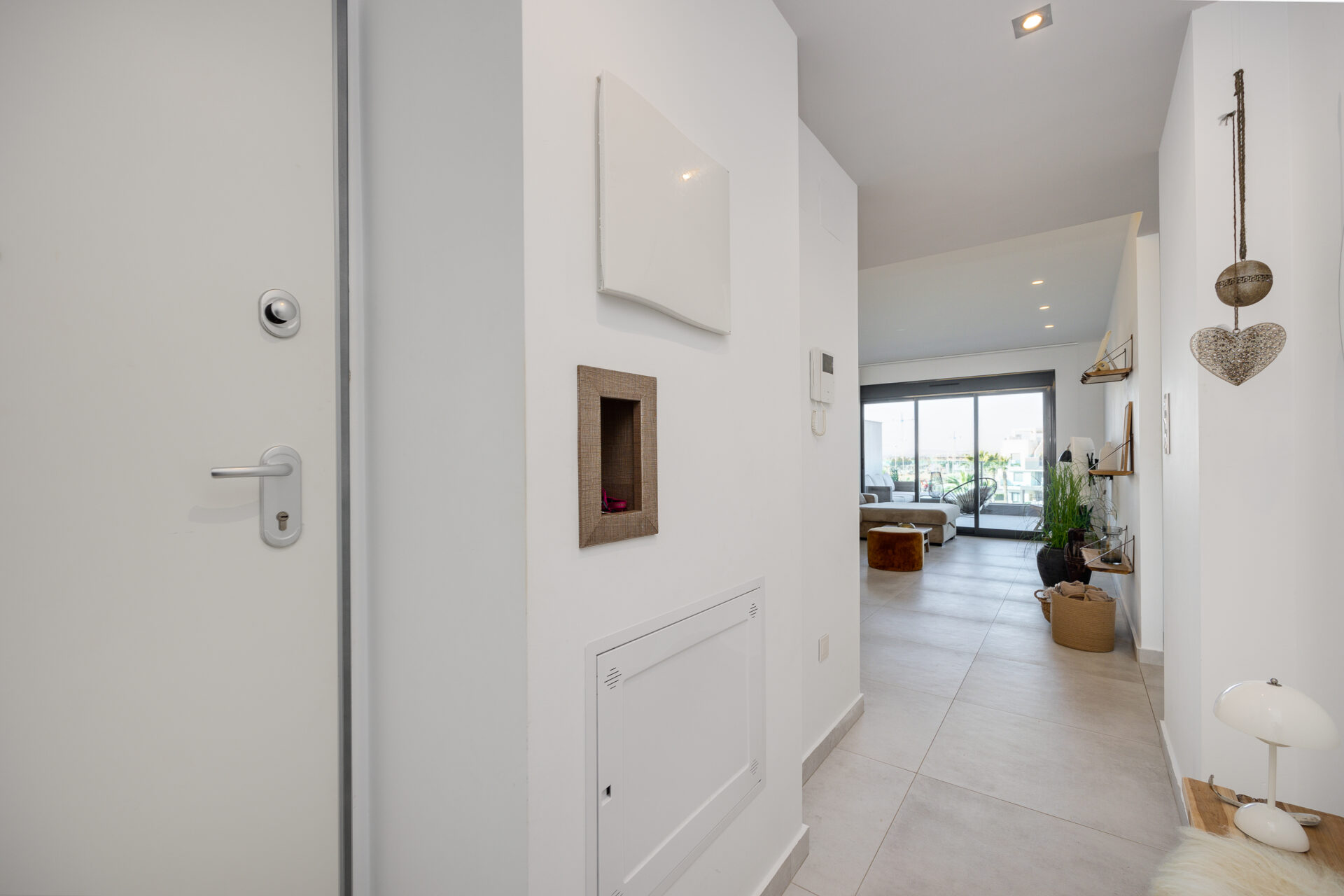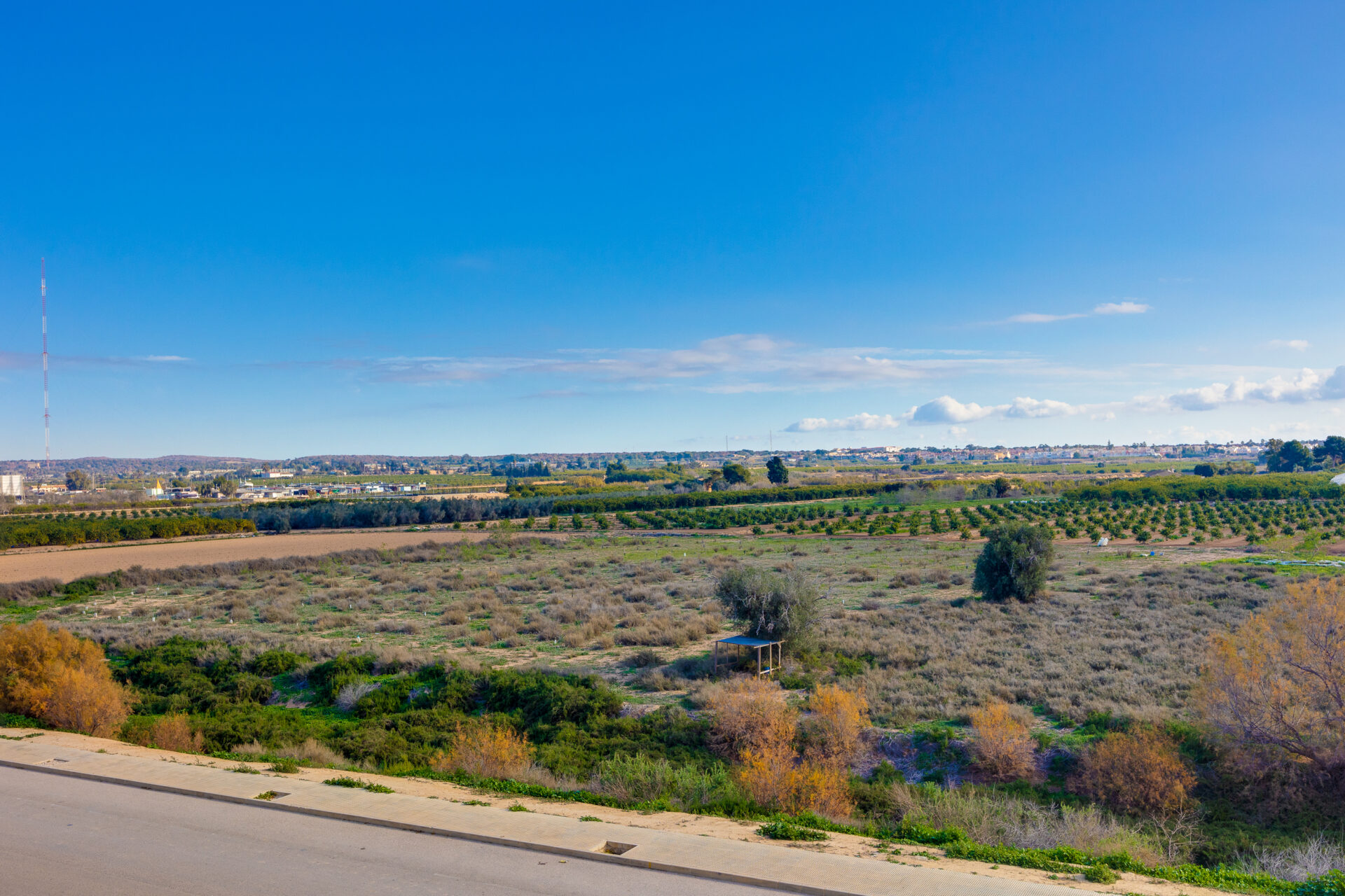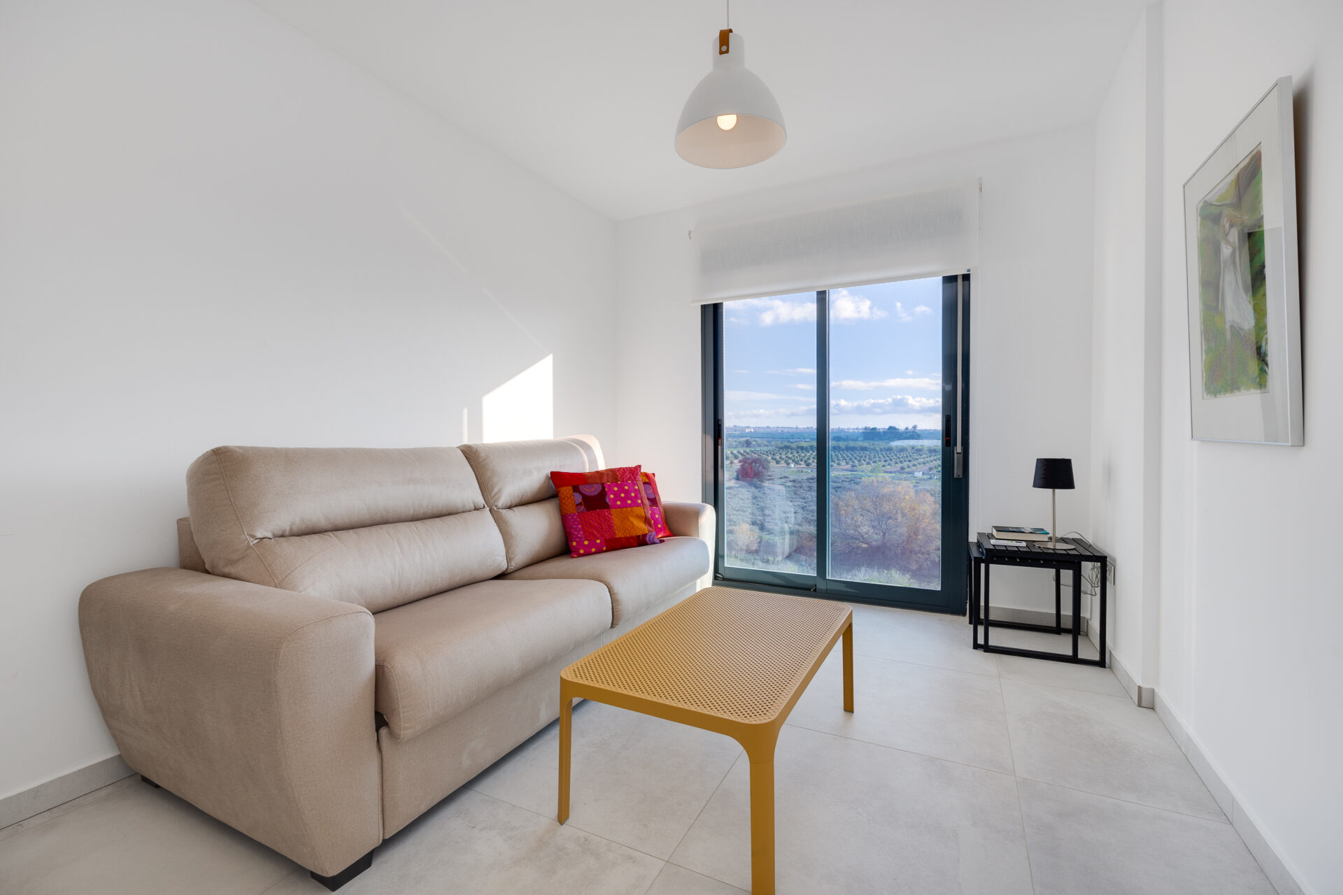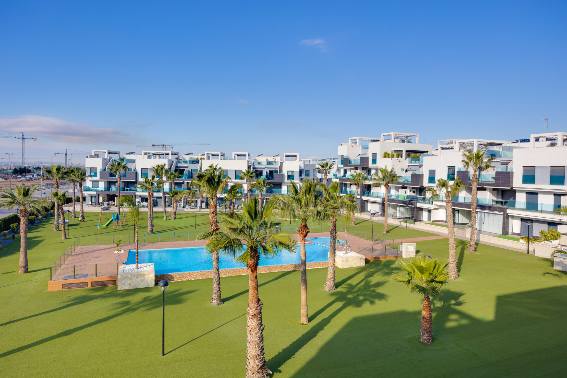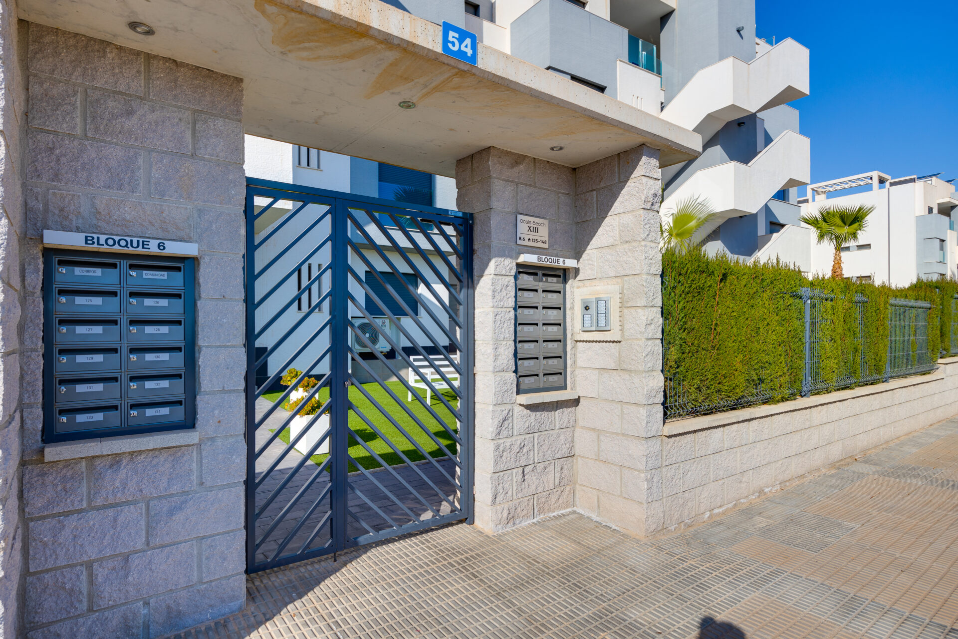 The apartment is located in Guardamar del Segura, Costa Blanca, Spain, within a secure gated complex in an international residential area, surrounded by orange groves.