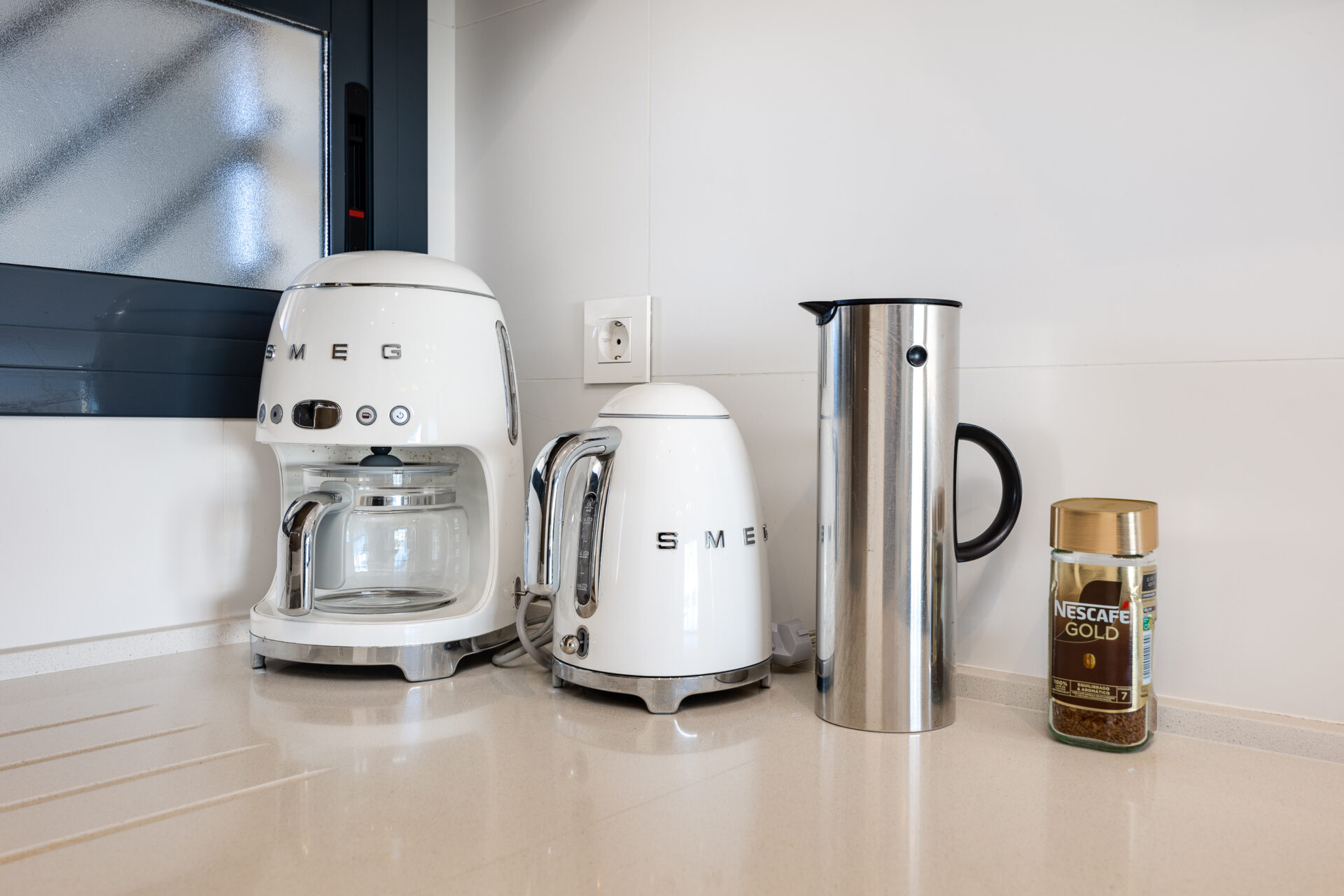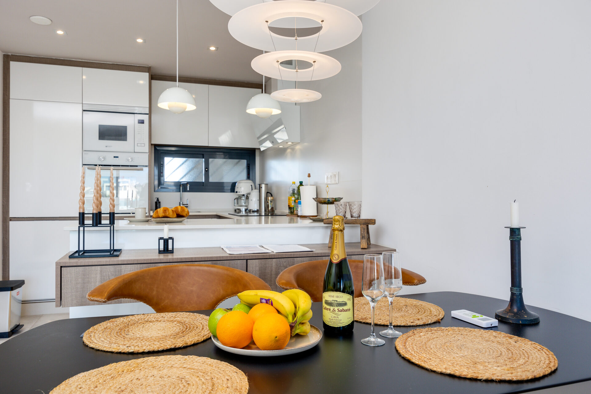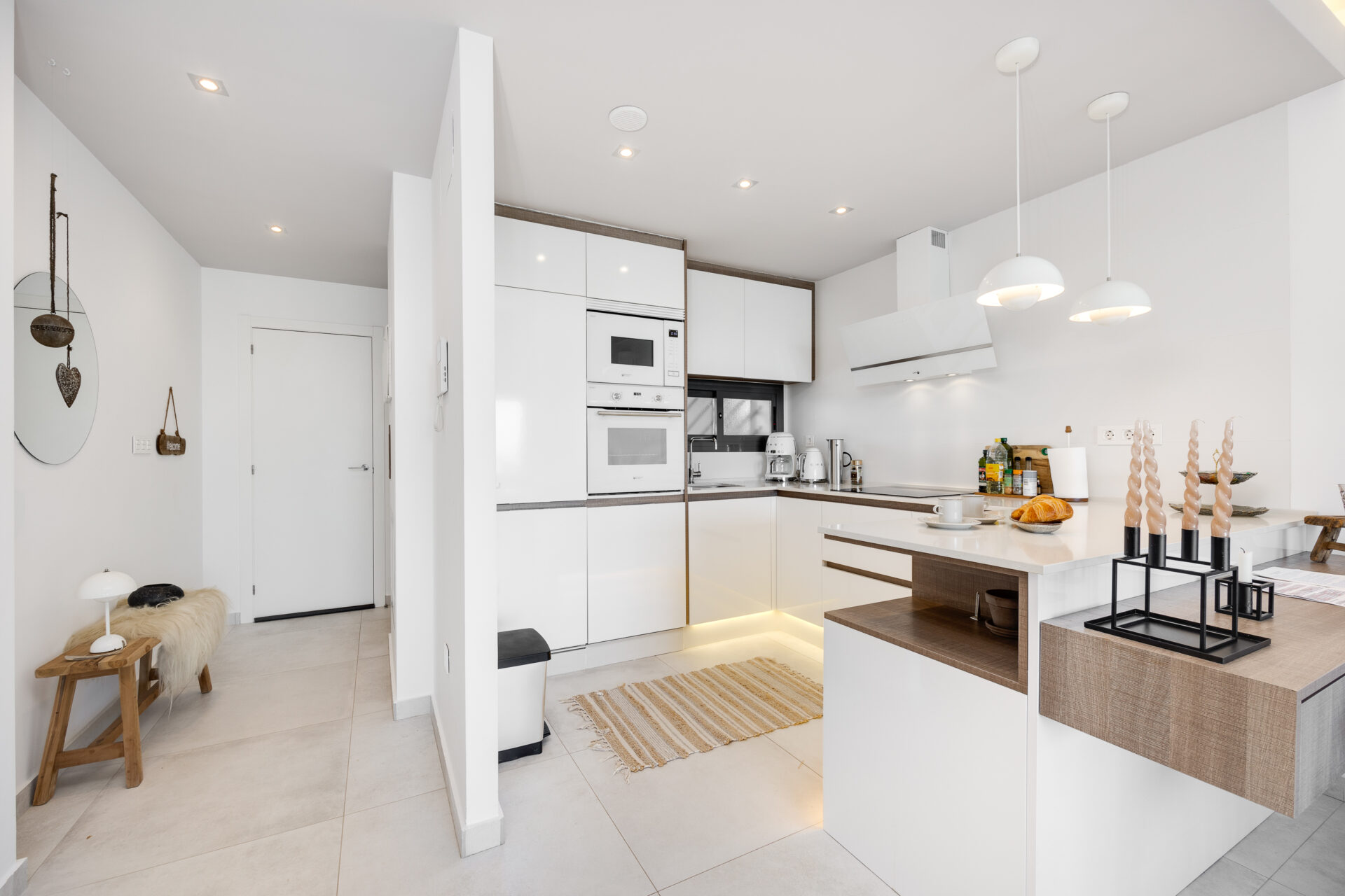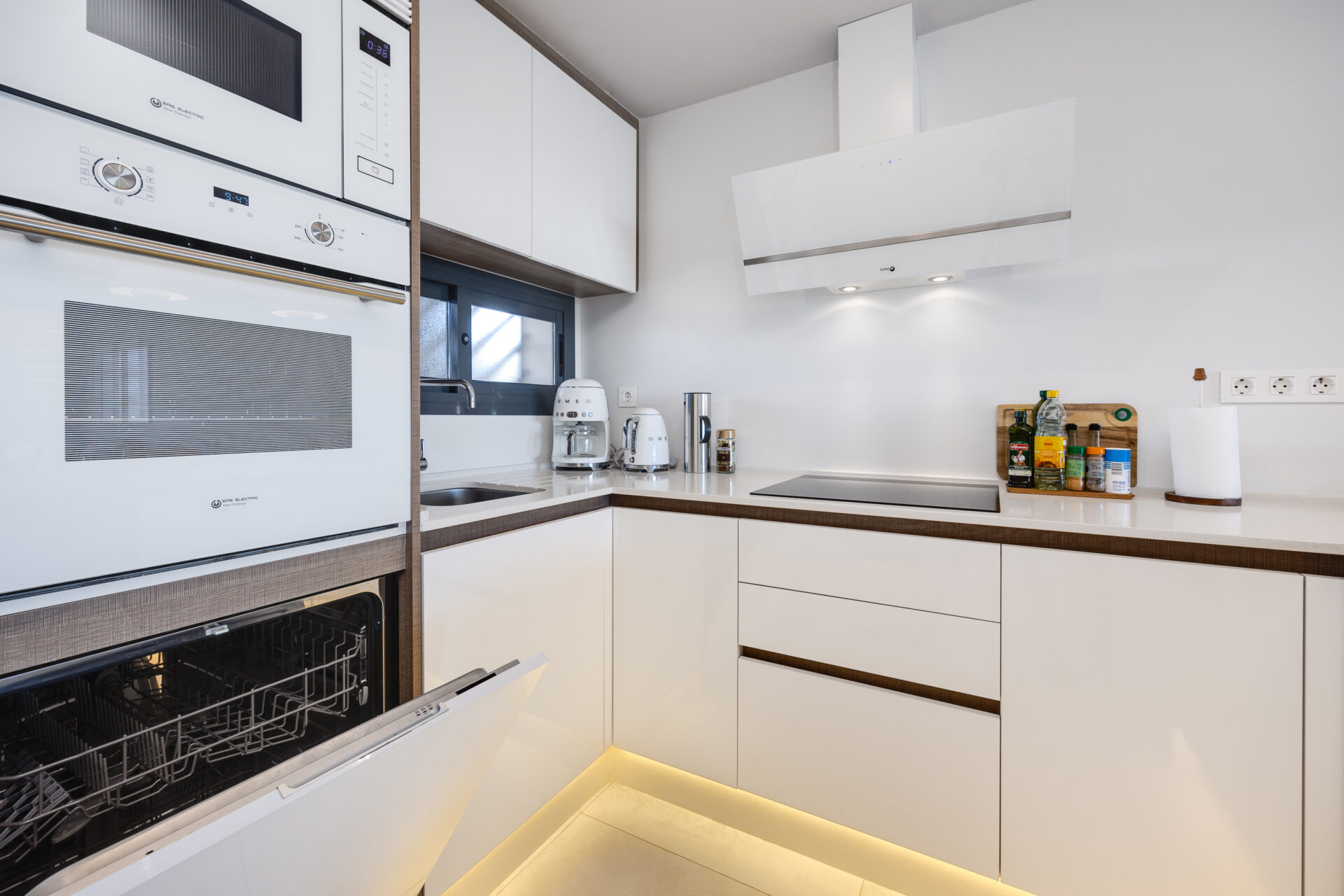 The kitchen is fully equipped including a dishwasher and a coffee machine dolce gusto