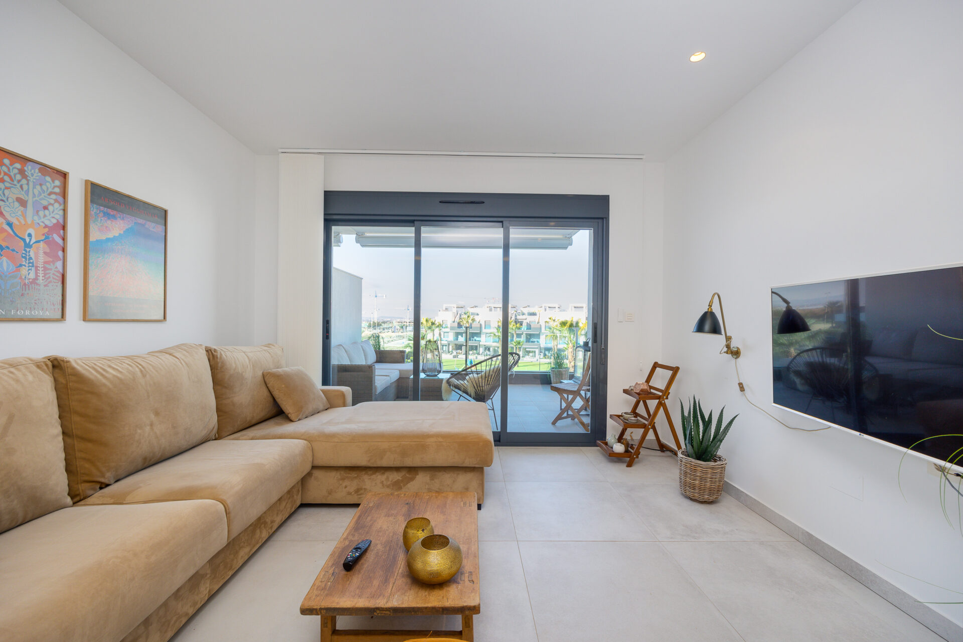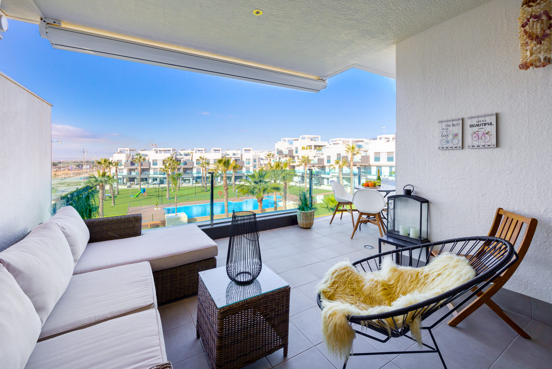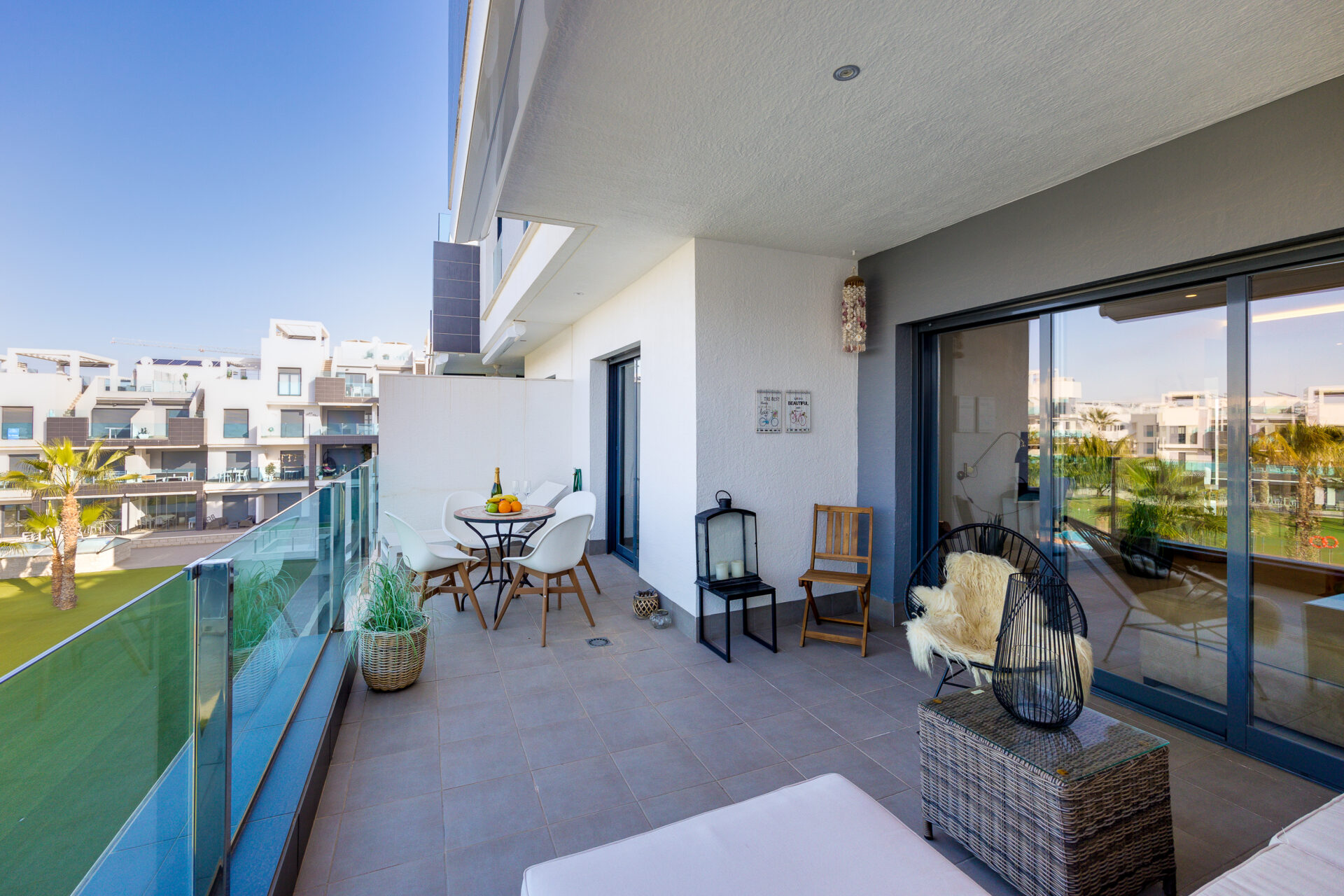 A fully furnished modern apartment with a huge private terrace overlooking swimming pool.