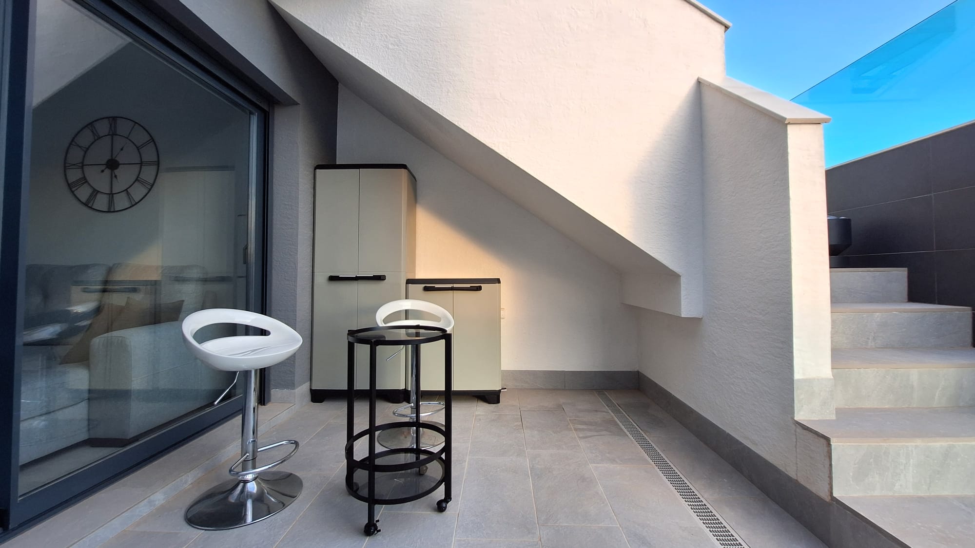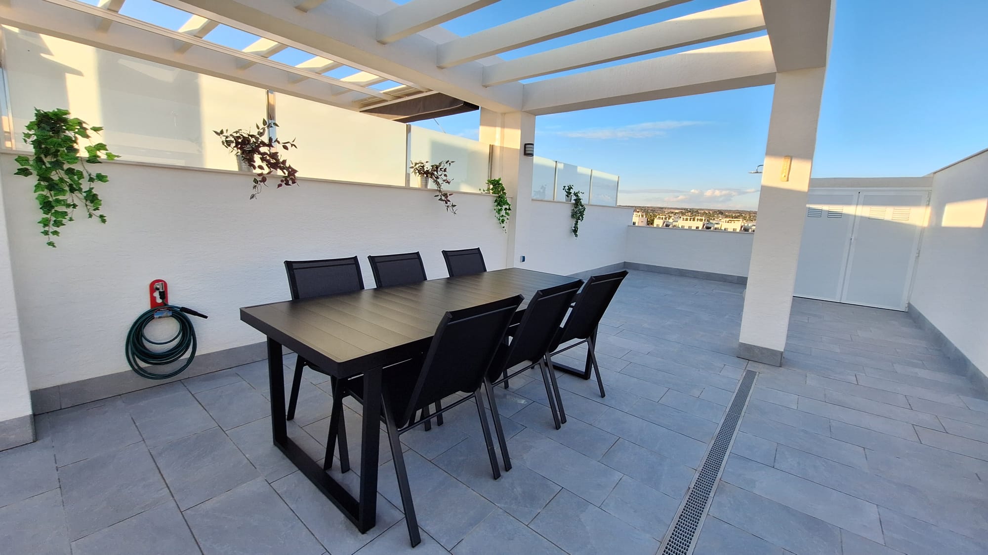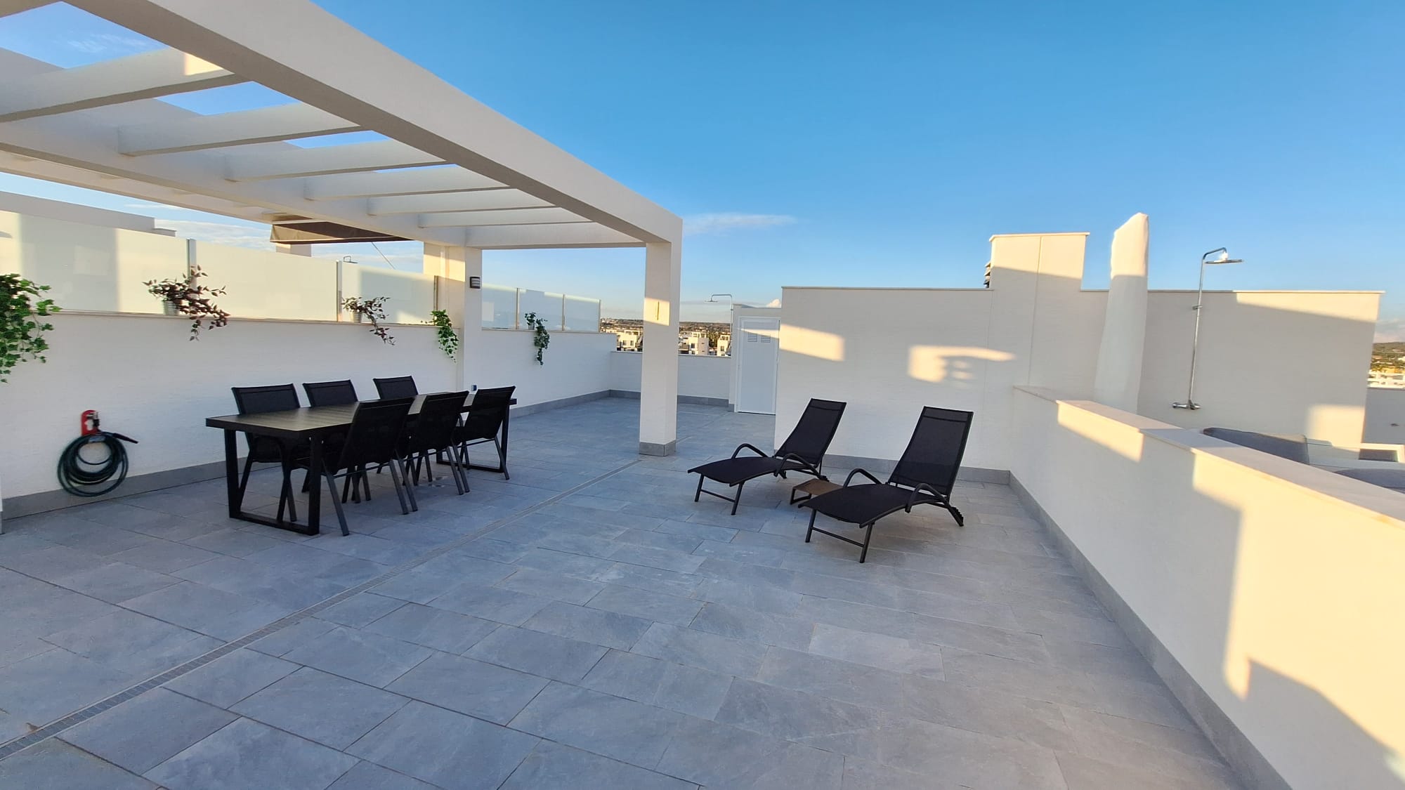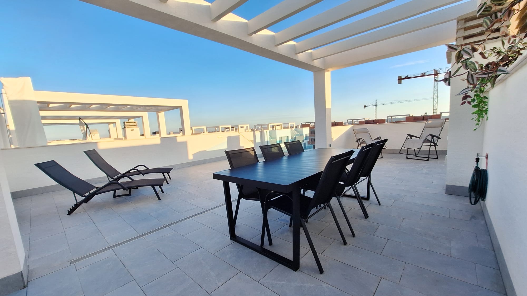 A fully furnished, modern penthouse featuring a spacious private rooftop terrace overlooking the swimming pool. The complex also offers a sauna and jacuzzi for your relaxation.