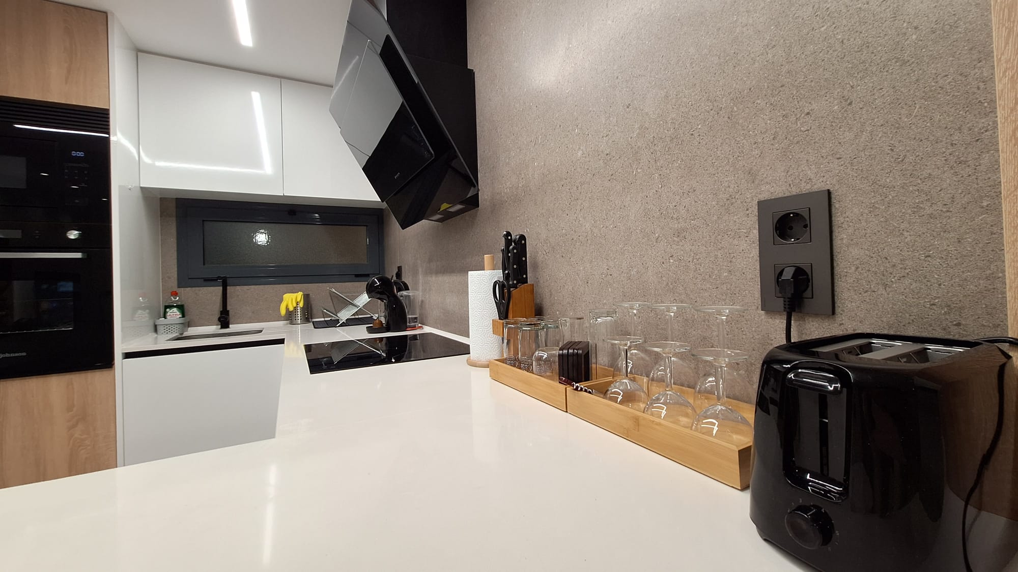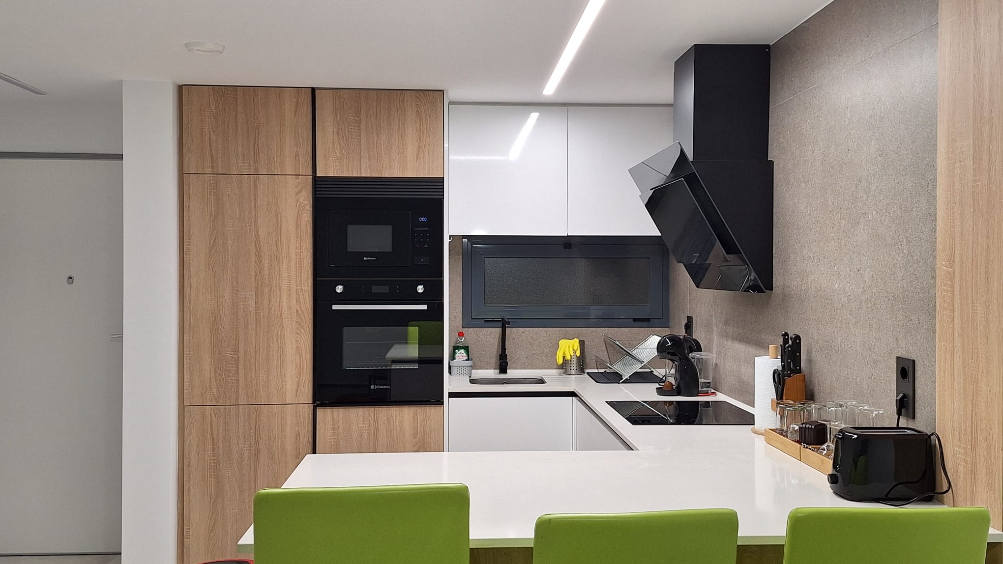 The kitchen is fully fitted and equipped with all appliances, including a microwave, dishwasher, oven, fridge, freezer, Nespresso machine, and washing machine. Each room is equipped with air conditioning.